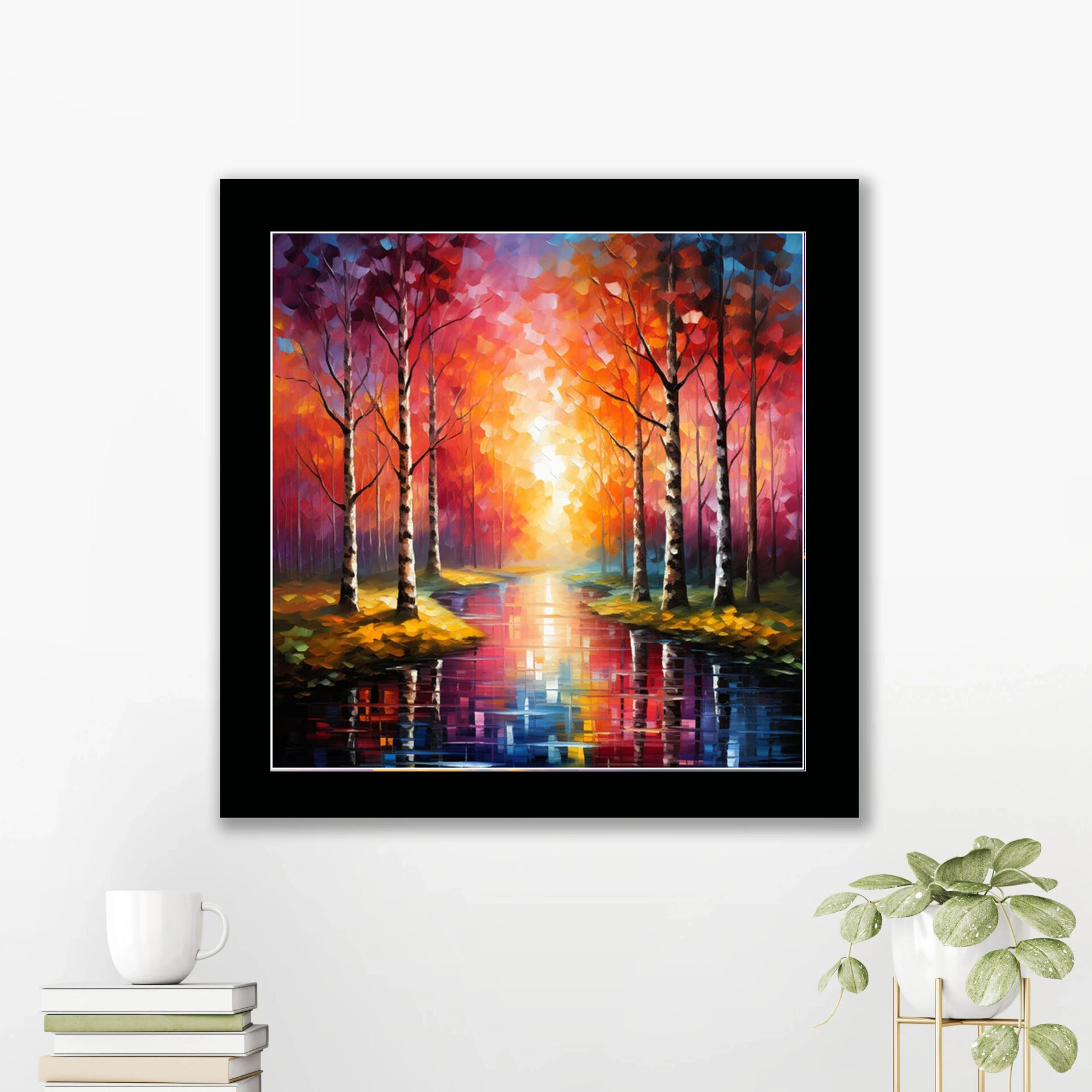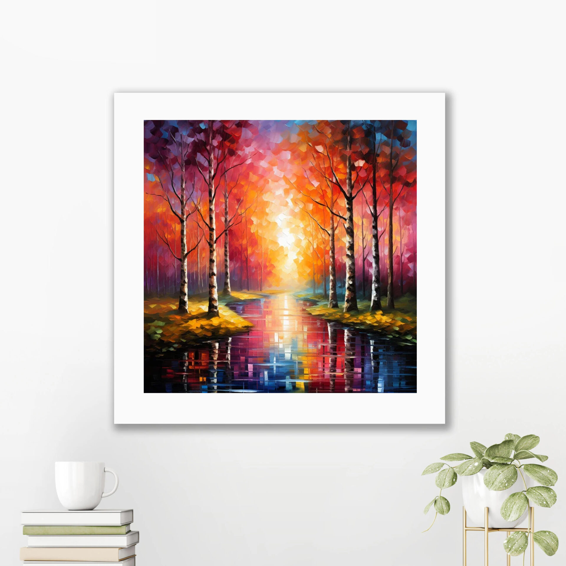 Elevate the ambiance of your home with our Birch Trees framed print, a 10×10-inch work of art that captures the ethereal beauty of a birch forest. The print is a high-quality representation of the original artwork, ensuring that every detail, from the intricate bark patterns to the dappled sunlight filtering through the leaves, is faithfully reproduced.