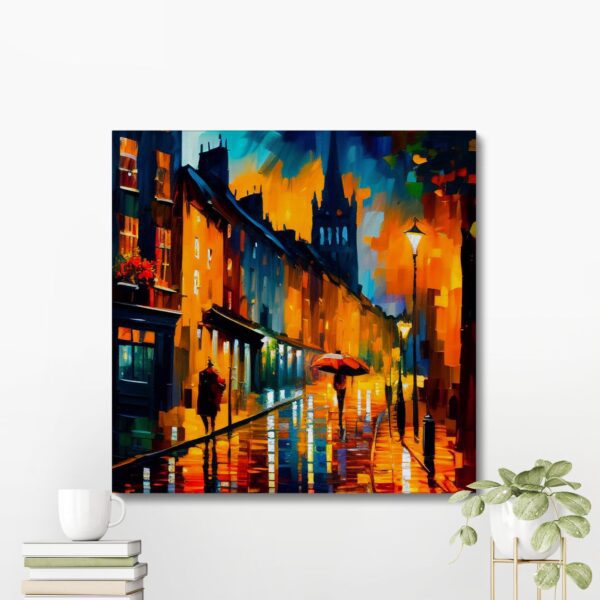The canvas print comes in a range of sizes, allowing you to choose the perfect fit for your space. Whether you prefer a smaller 12×12 inch print to add a subtle touch of Edinburgh to your study or a larger 30×30 inch print to make a bold statement in your living room, the choice is yours. Each size option maintains the high quality and vibrancy of the print, ensuring that every detail of Edinburgh’s beauty is preserved.