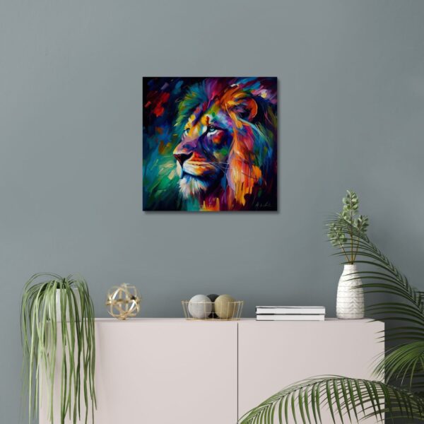 The intricate details of the canvas print of a Lion head colourful canvas are captured with precision and clarity, making it a true work of art. The use of vibrant colours elevates the print, making it a statement piece for any room. The canvas print is perfect for adding a touch of nature to a living room, bedroom, or even a modern office space.