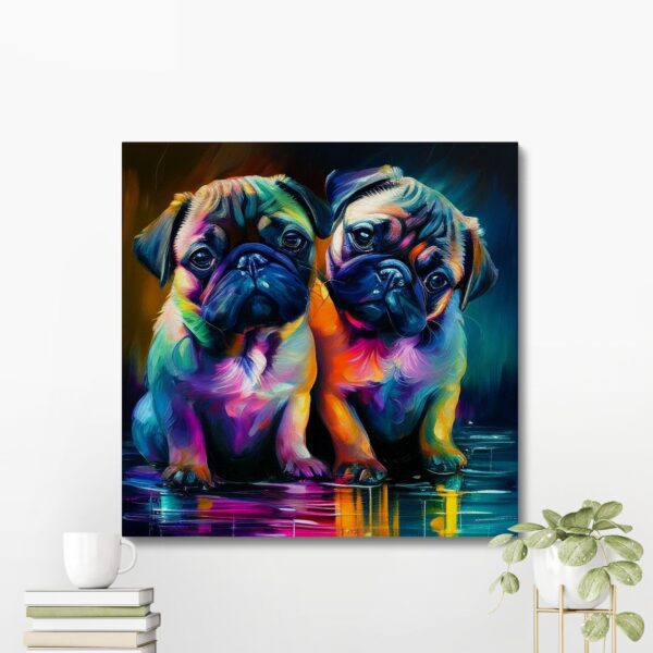 Whether you’re looking to make a playful statement or simply add a touch of cuteness to your home, our modern print of Two Pugs is a perfect choice. It’s a unique and charming way to decorate your walls and bring a smile to your space. With its ready-to-hang design and a range of sizes, you can easily incorporate this delightful piece of art into your collection. Order yours today and experience the joy of this modern canvas print for yourself.