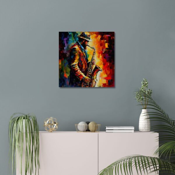 Introducing our captivating canvas print featuring a Saxophone Player, the perfect addition to any music enthusiast’s home or office space. This extraordinary piece of wall art is printed on high-quality canvas, ensuring its longevity and visual appeal. The dynamic depiction of a skilled saxophone player exudes a sense of passion and musicality, making it a captivating focal point.