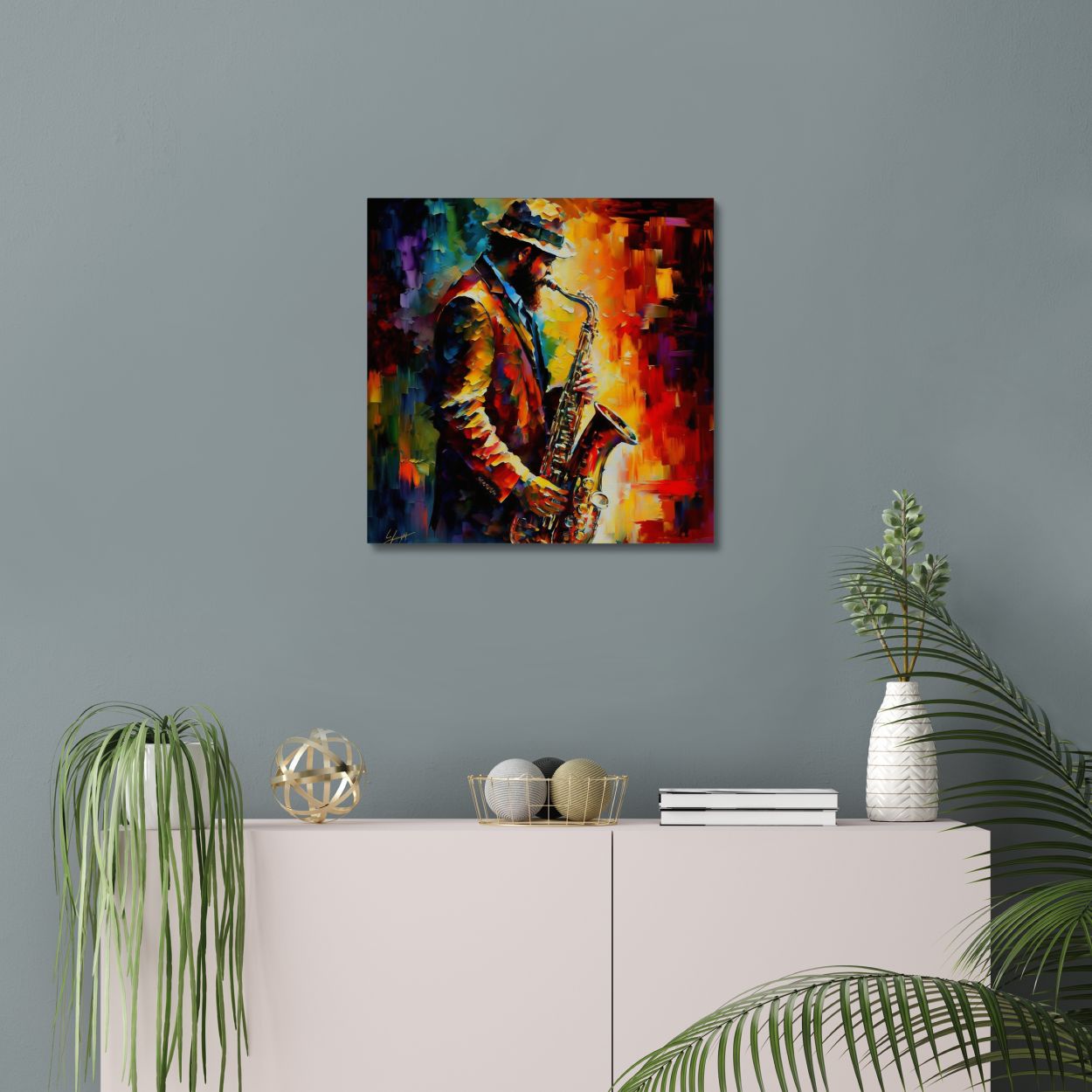 The intricate details of the Saxophone Player canvas print are captured with remarkable precision, bringing the musician to life on your wall. The vibrant colors and expressive strokes beautifully convey the energy and soulfulness of the saxophone performance. This canvas print is perfect for adding a touch of musical inspiration to a music room, studio, or even a modern office space.