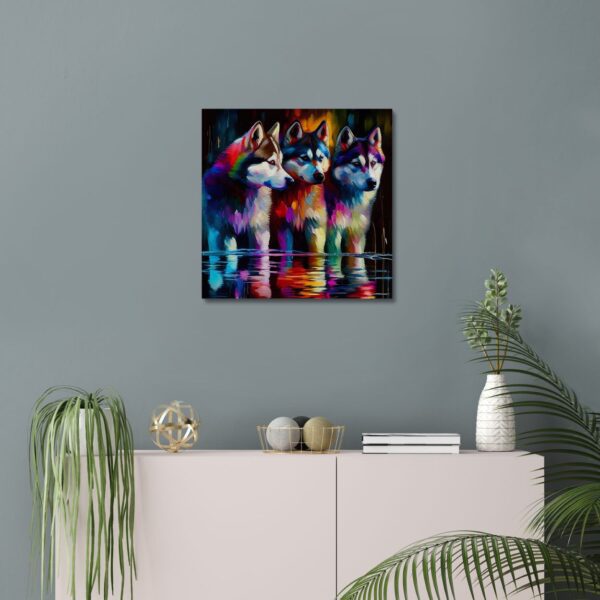 The intricate details of the canvas print of a Three Siberian Husky canvas print are captured with precision and clarity, making it a true work of art. The use of vibrant colours elevates the print, making it a statement piece for any room. The canvas print is perfect for adding a touch of nature to a living room, bedroom, or even a modern office space.
