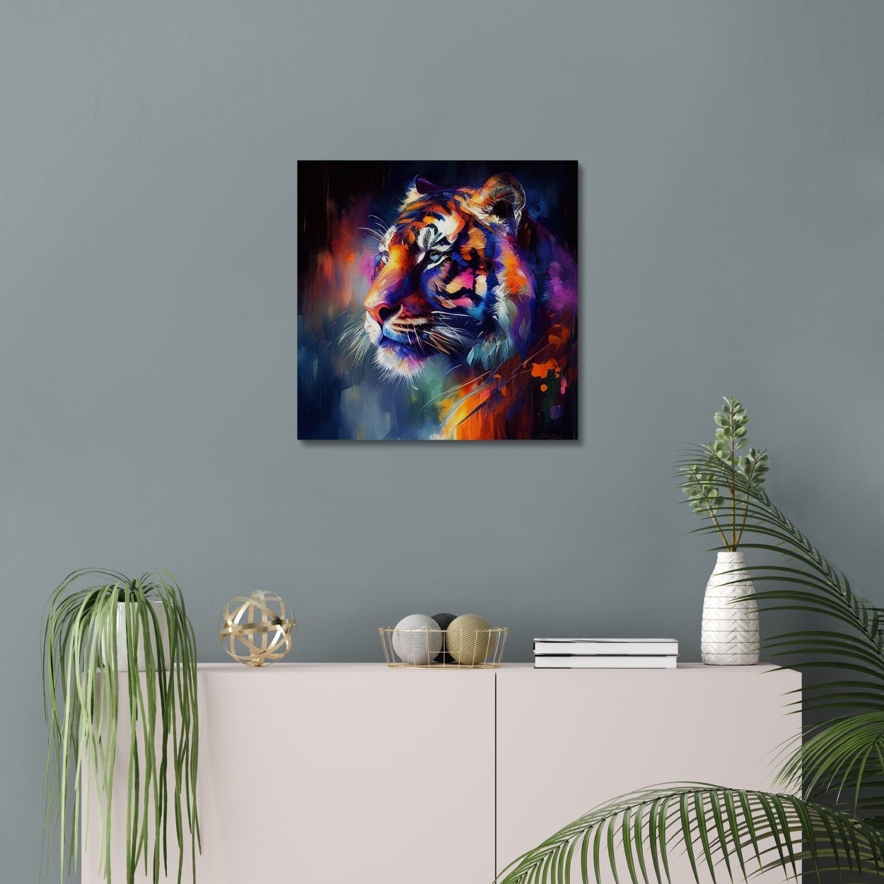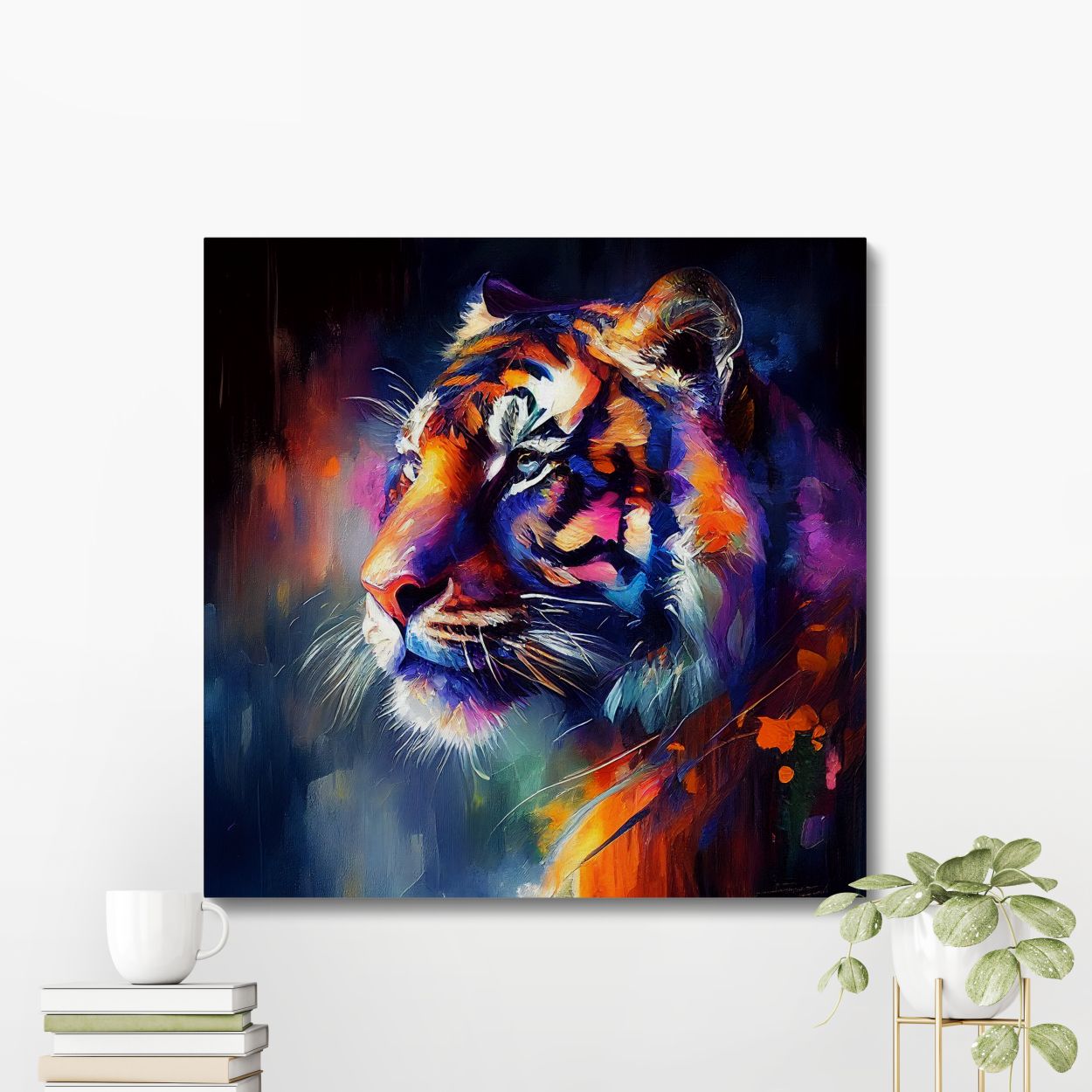 The Tiger Canvas Print of a colourful tiger head are captured with precision and clarity, making it a true work of art. The use of vibrant colours elevates the print, making it a statement piece for any room. The canvas print is perfect for adding a touch of nature to a living room, bedroom, or even a modern office space.